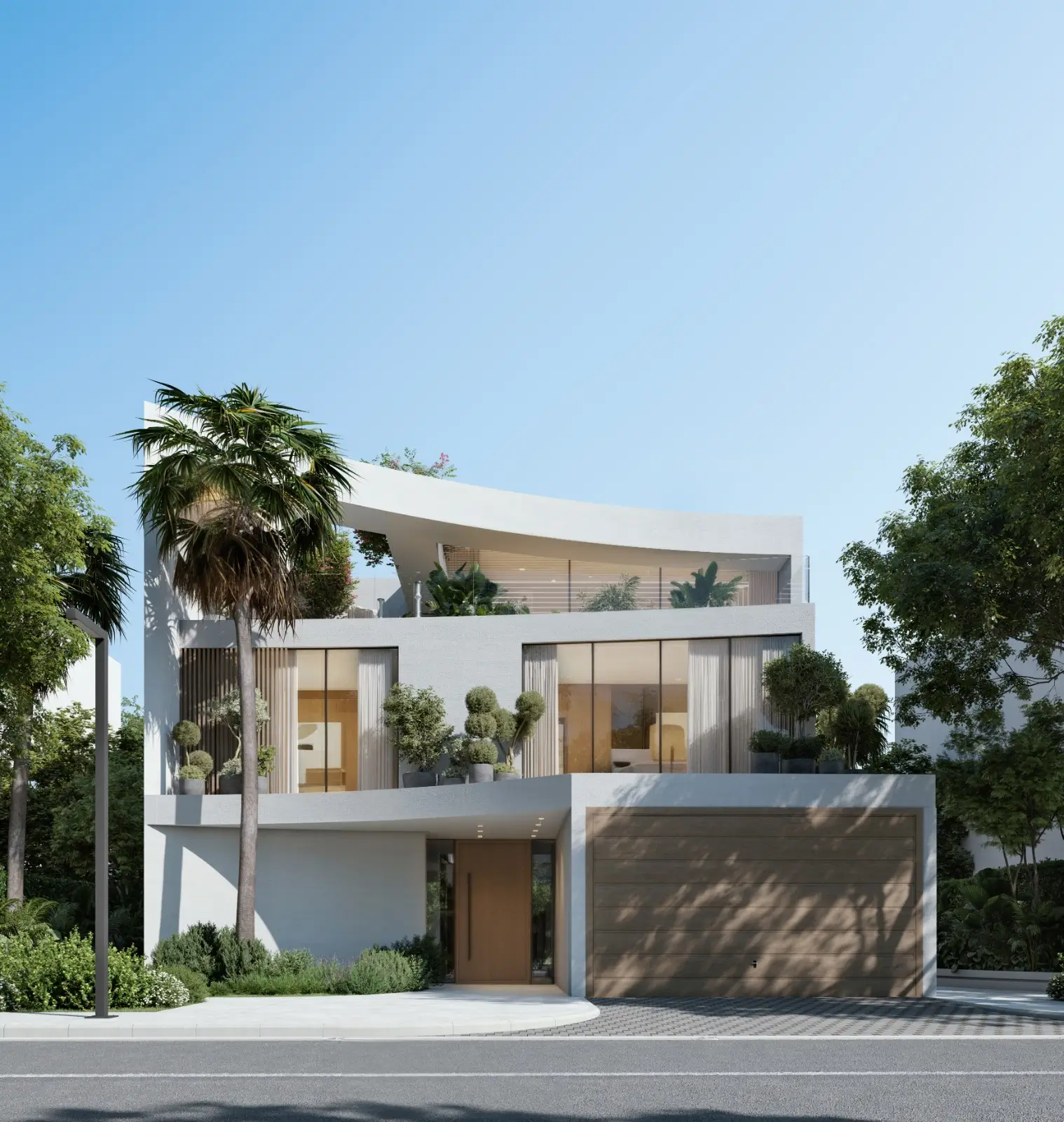 Semi-detached villas with signature curved rooflines, private pools, and landscaped gardens. Architectural excellence inspired by desert dunes.
